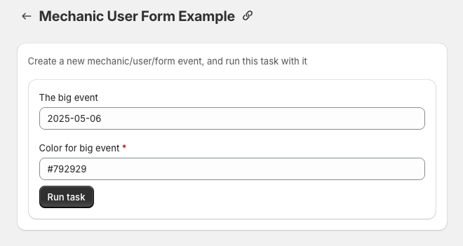 When a task subscribes to the **mechanic/user/form** event topic a "Run task" button is added to the task.