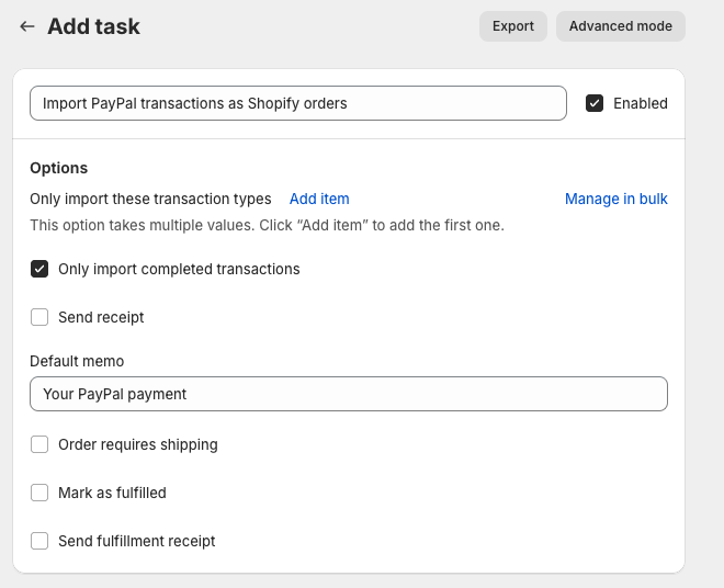 * [ ] Install the task: <https://tasks.mechanic.dev/import-paypal-transactions-as-shopify-orders>