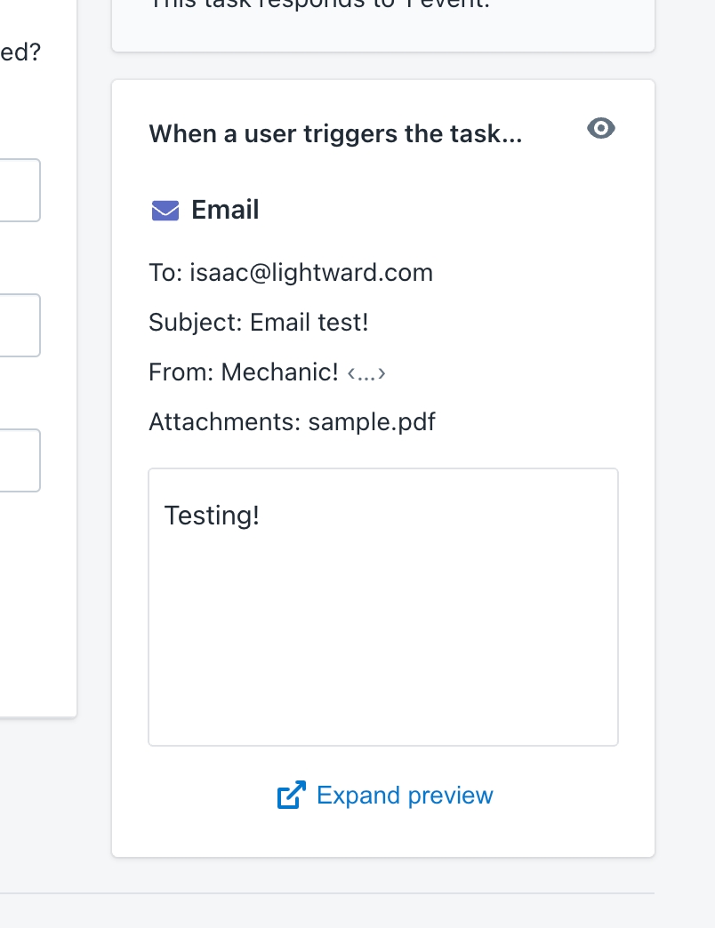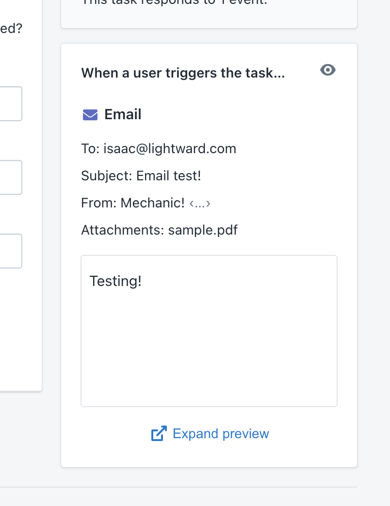 For tasks that use the Email action, you'll see a preview of the email itself in the task preview area.