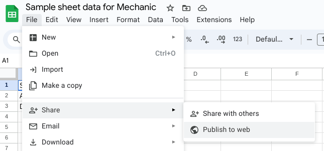 In this tutorial, you'll learn how to publish a Google sheet to the web as a comma-separated values (CSV) file and then fetch that data from Mechanic.